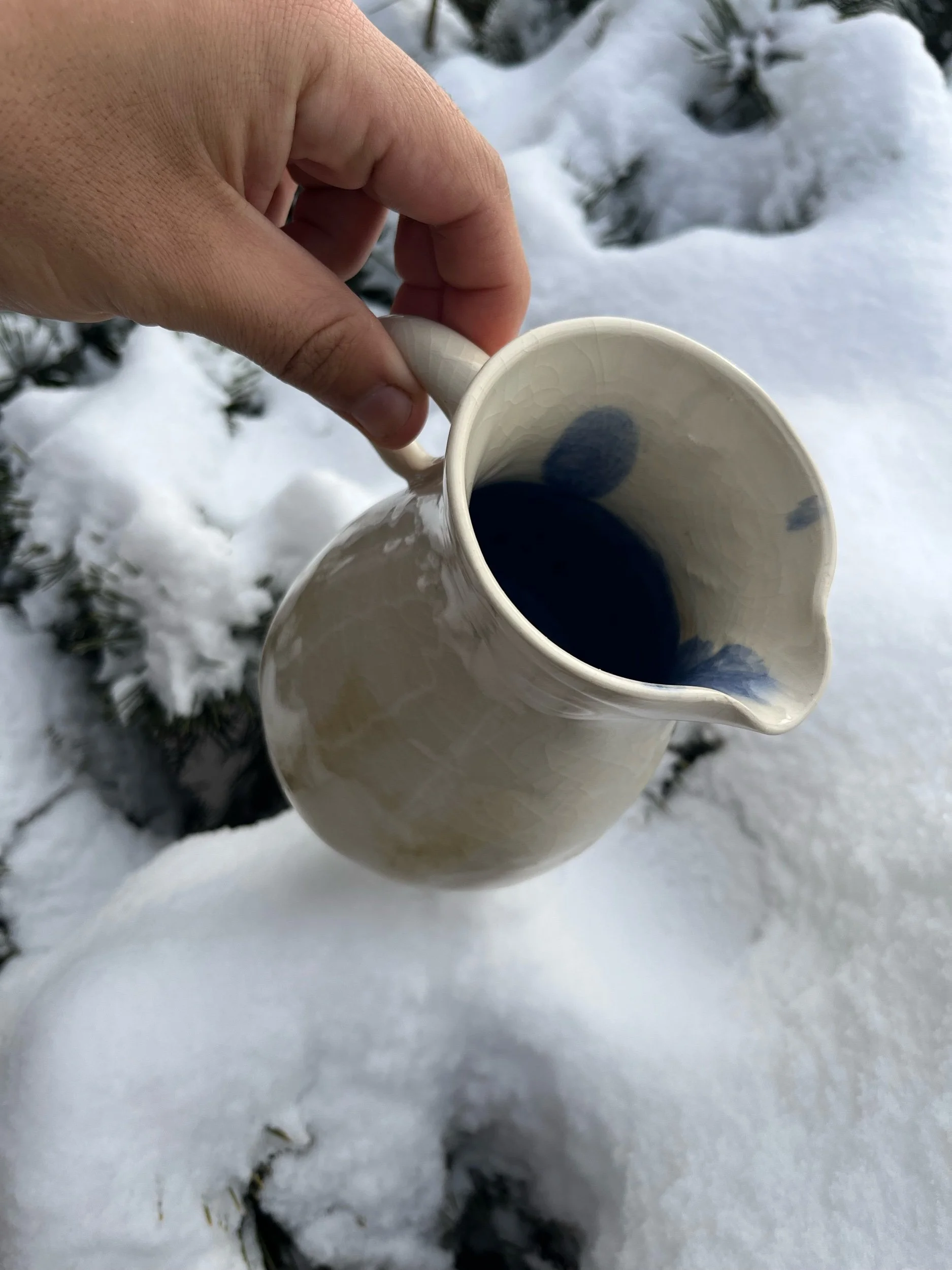 Shop › medium pitcher #1 Image 1 of 3 Image 2 of 3 Image 3 of 3 medium pitcher #1 $50.00 porcelainred iron oxide glaze (outside)wild clay/wood ash/river mussel shell glaze (inside) Add To Cart Added! porcelainred iron oxide glaze (outside)wild clay/wood ash/river mussel shell glaze (inside)